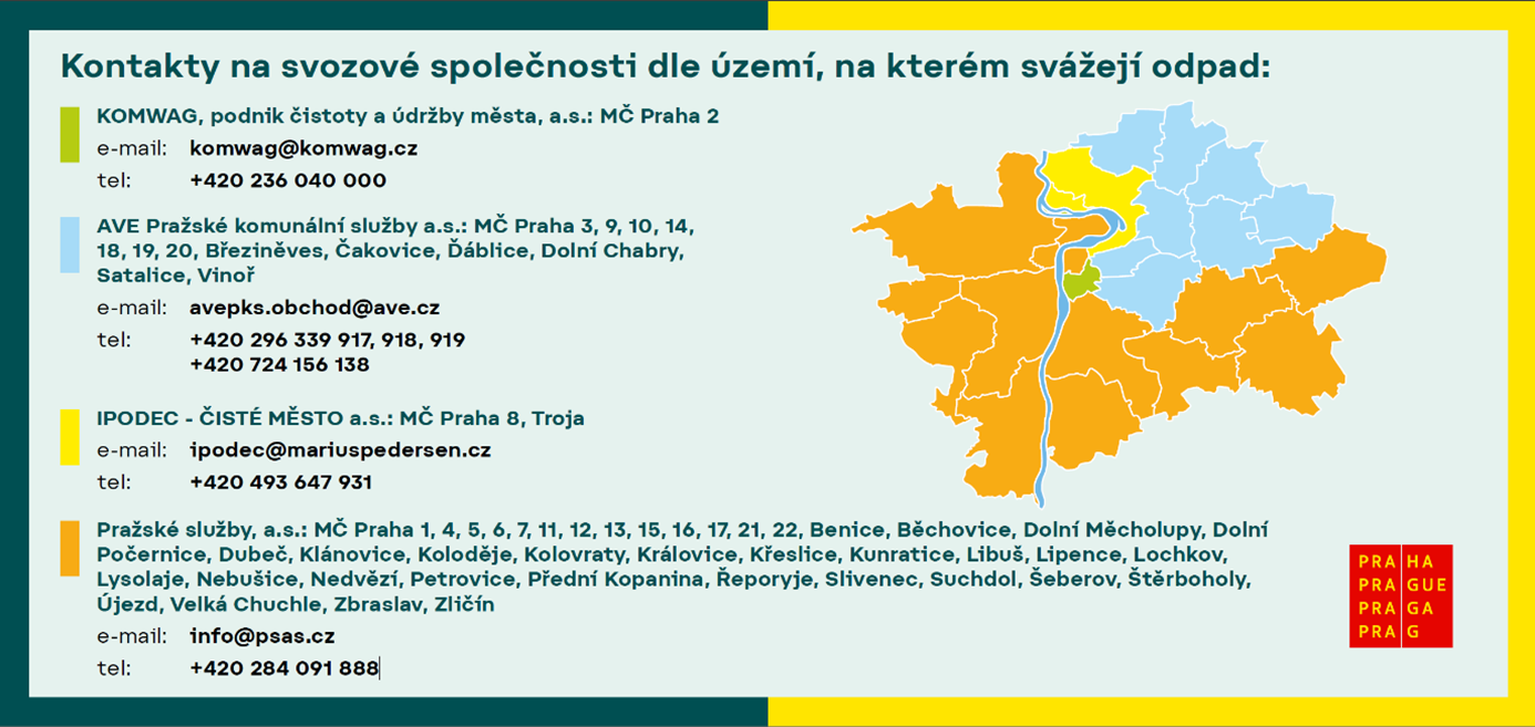 - Preferujete online sjednání? Doporučujeme využít Portál Pražana: portalprazana.cz – Odpad pro podnikatele